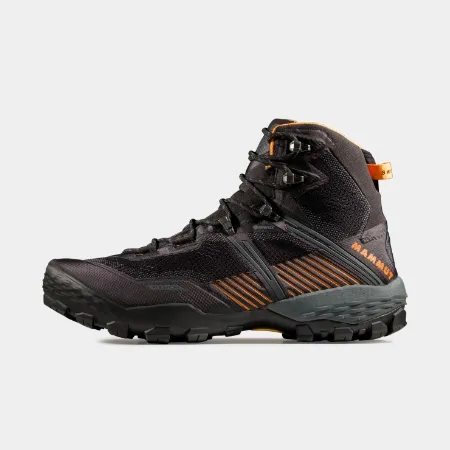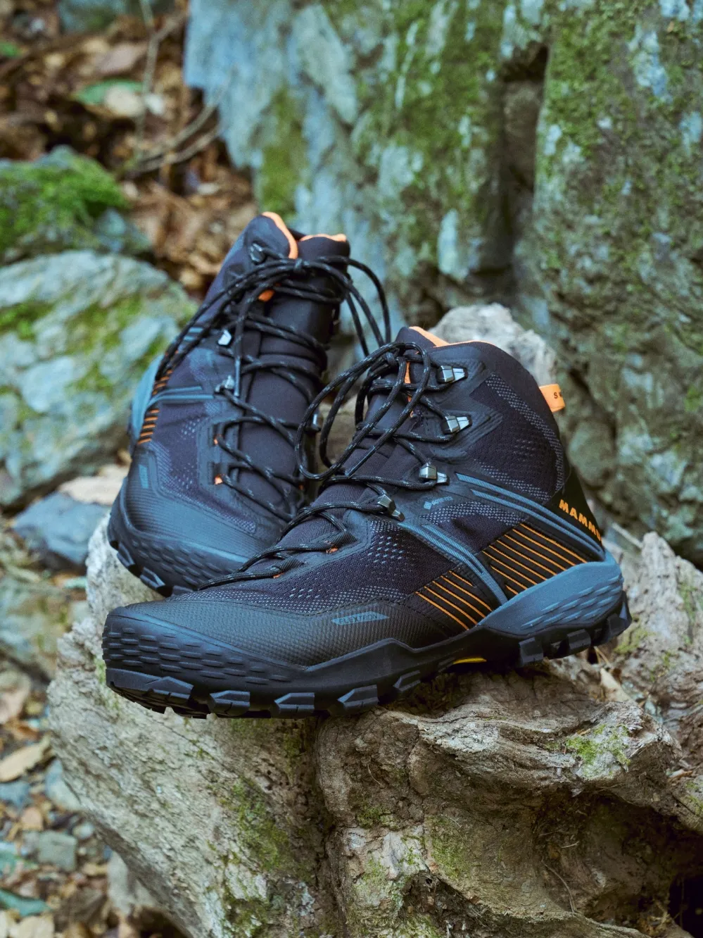 最大の特徴は、ミッドソールに組み込まれたスプリングスチールソール。シューズのねじれを抑えて安定性を高め、不整地での捻挫リスクを大幅に軽減します。さらに、着地時の圧力を均等に分散することで、グリップ力と歩行時の安定感も向上。マムートはスイスの老舗登山靴メーカー〈ライケル社〉のノウハウを引き継いでおり、その技術と最新テクノロジーが融合した一足です。安全に山を歩きたい方に、自信を持っておすすめできるシューズです。