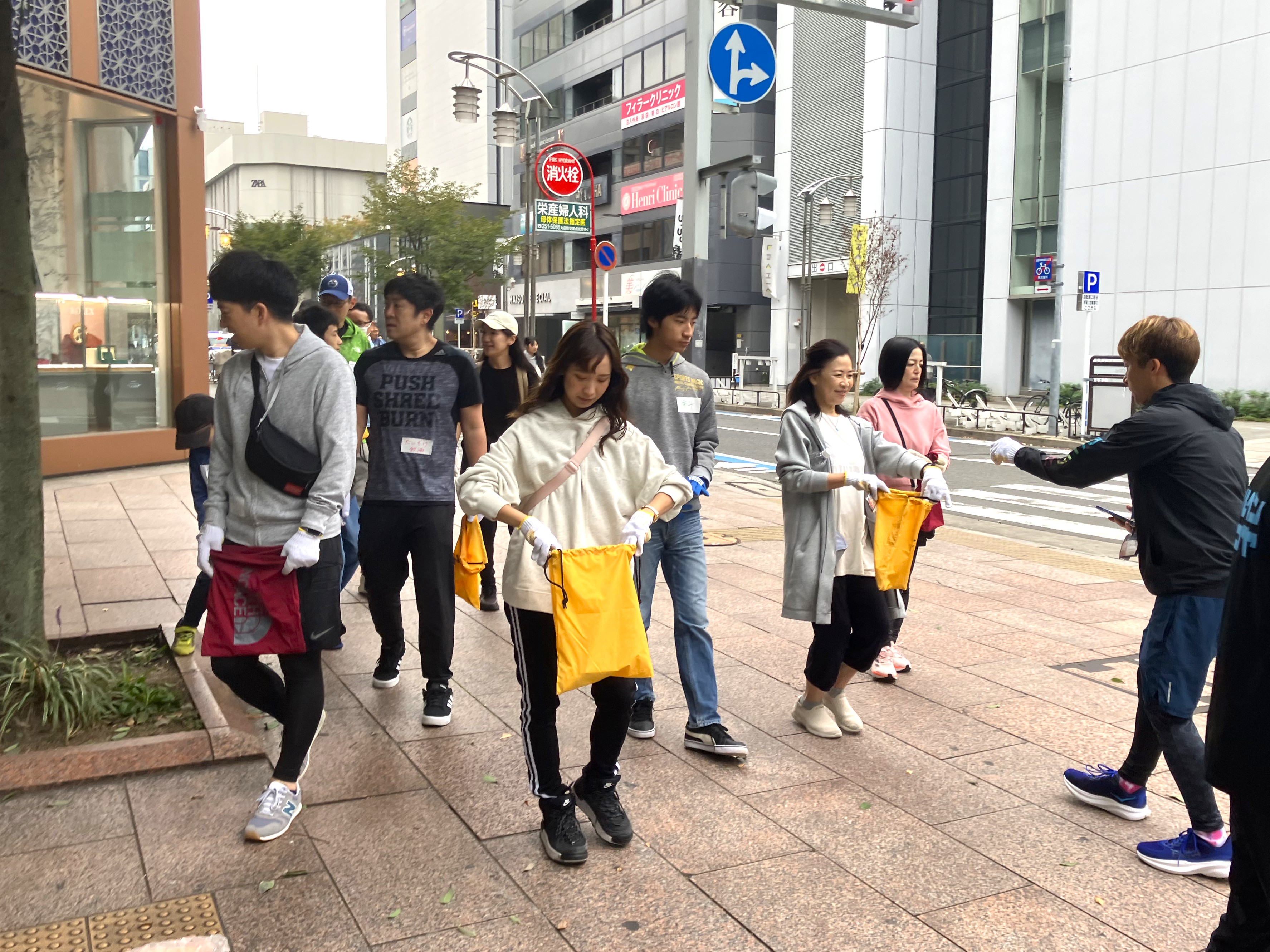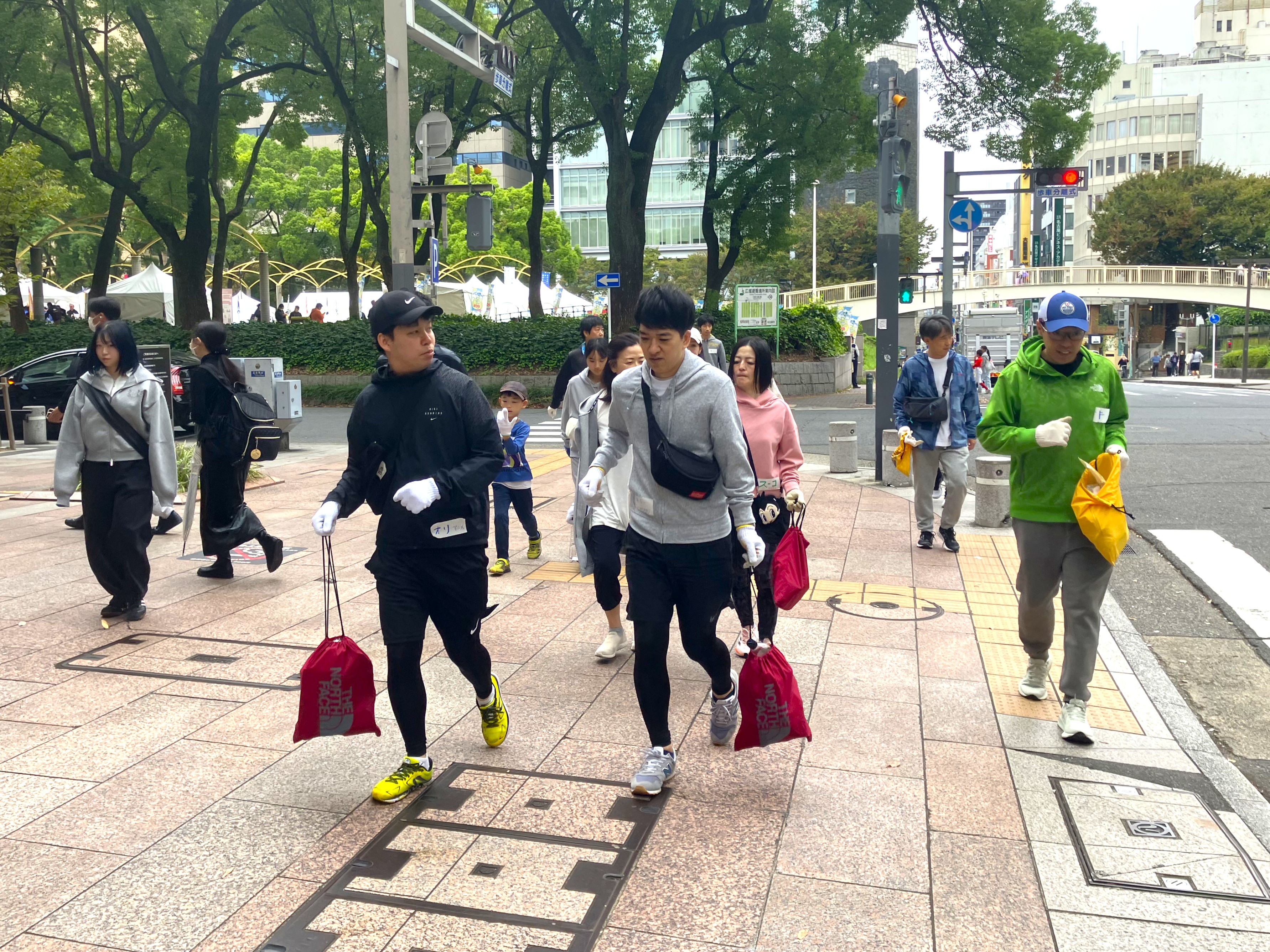 10月18日、Alpen FUKUOKA(博多)周辺にてプロギングイベントを開催しました。受付時間始に雨が降り、急遽コースを見直すハプニングもありましたが、初めてプロギングに参加する19名の方にご参加いただき、約3キロのゴミを回収すしました。ランナーの方、学生の友人グループ、お子さま連れのご家族など、多様な参加者が集まり、終始和やかな雰囲気での実施となりました。