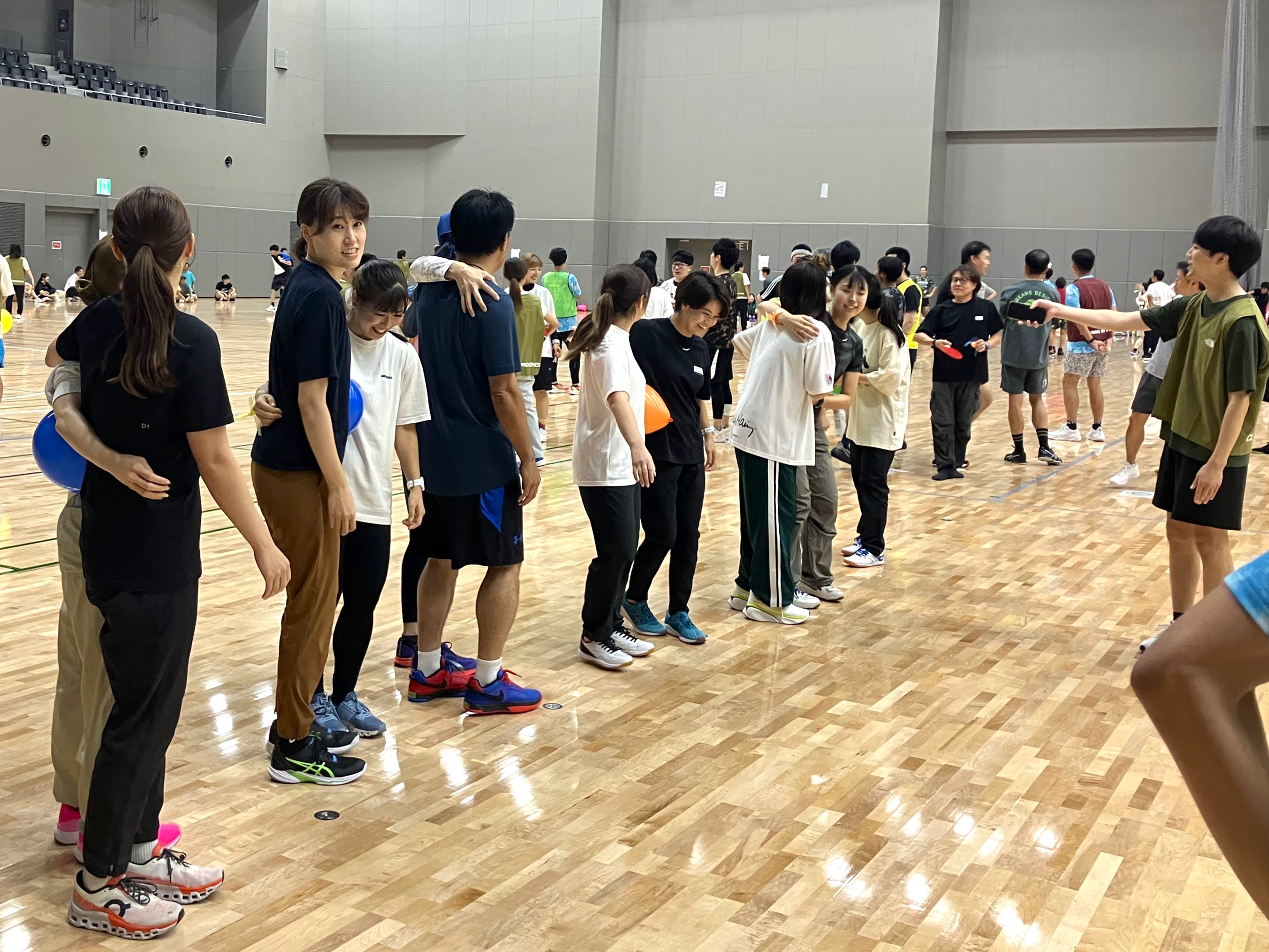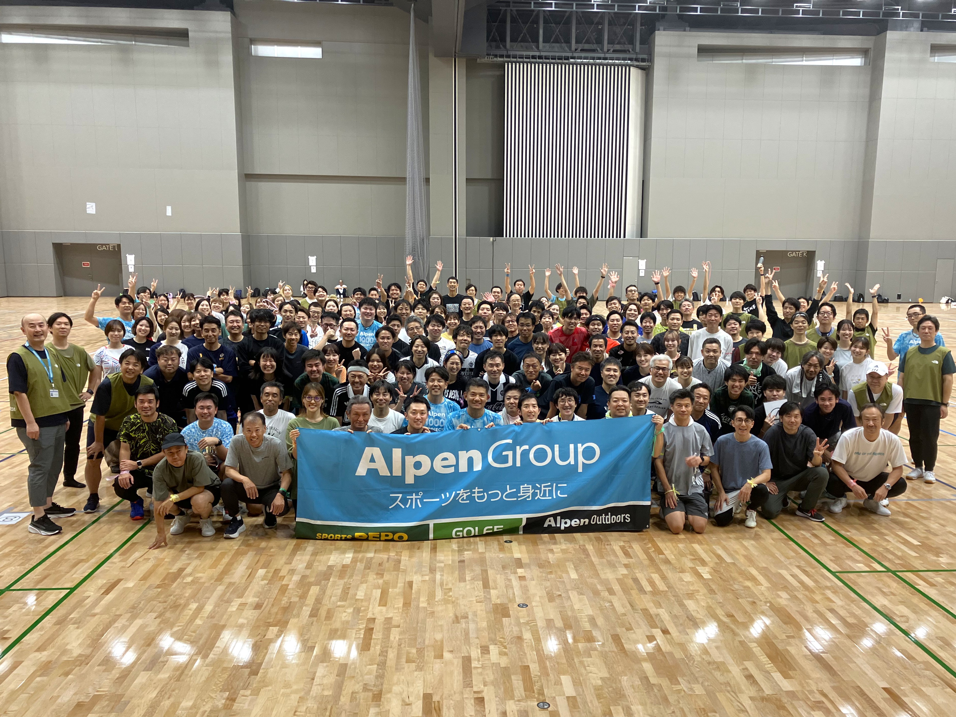 10月8日に名古屋市にて「Alpen Sports Festival」と題した大運動会を実施しました。本社社員を中心に、社長・役員を含む190名が参加し、大縄跳び、借り人競争、〇×クイズ、リレーの全4種目を全力で楽しみました。〇✕クイズでは社内に関するクイズが出題されたほか、リレーではバスケットボールやサッカーのドリブル、二人で風船挟んで走るなど、バラエティ豊かな種目が展開され、会場は大いに盛り上がりました。