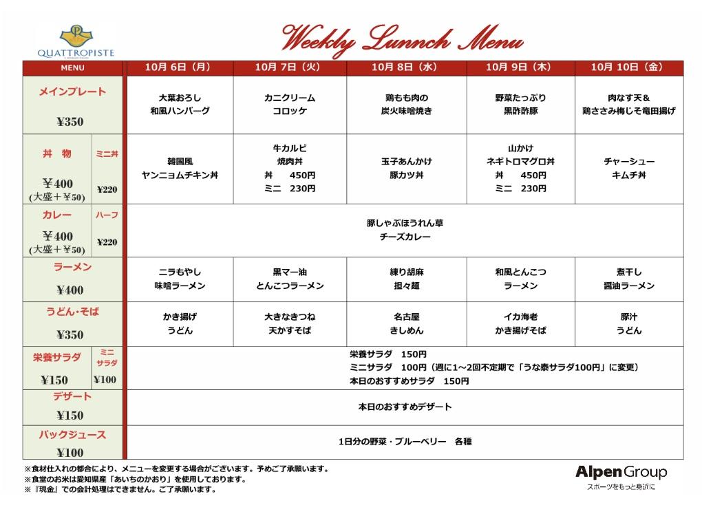 今週の食堂メニューです。