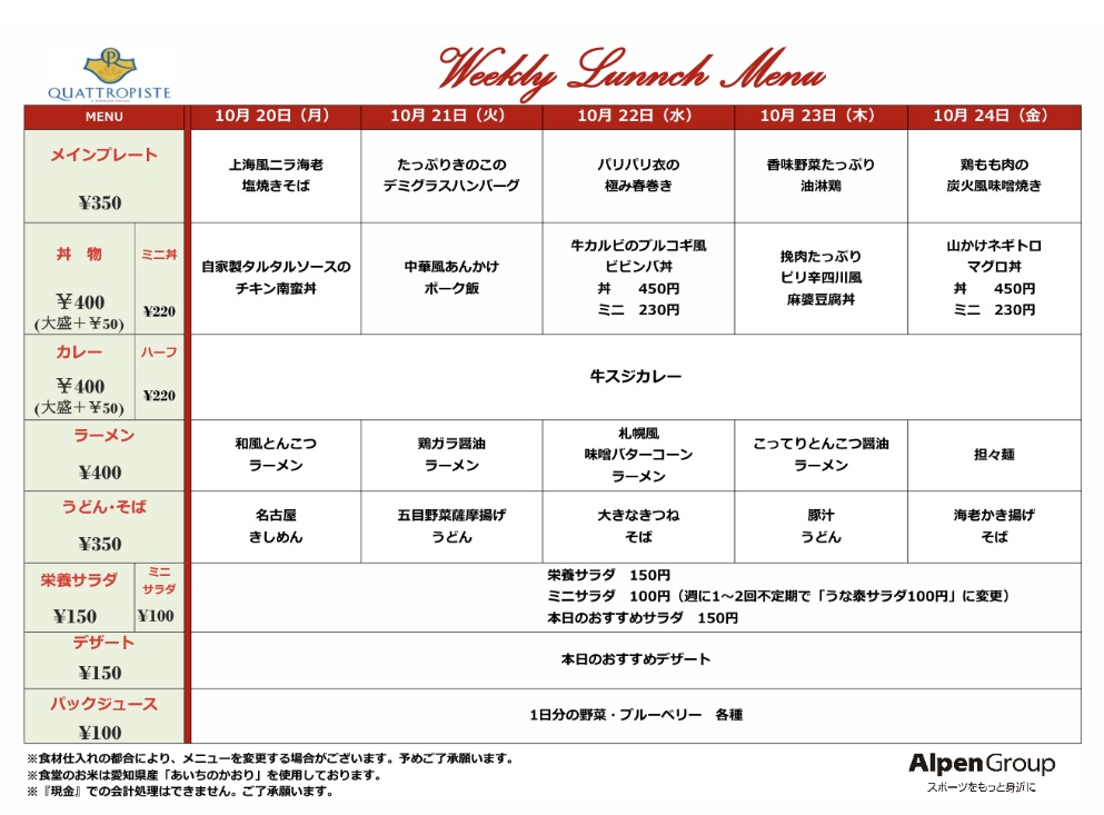 今週の食堂メニューです。