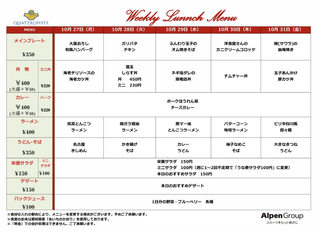 今週の食堂メニューです。
