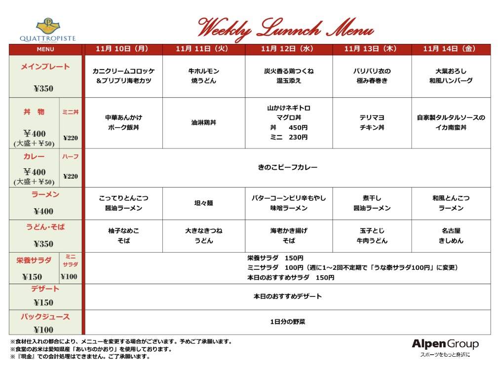 今週の食堂メニューです。
