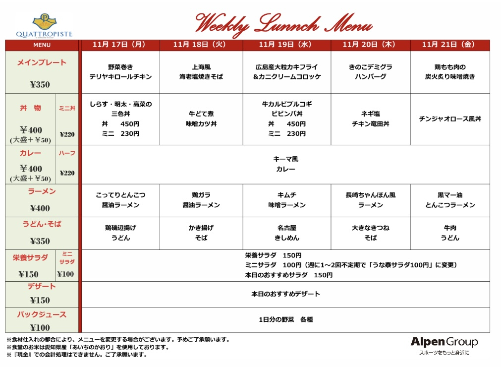 今週の食堂メニューです。