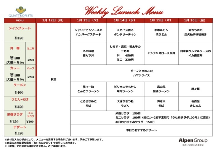 今週の食堂メニューです。