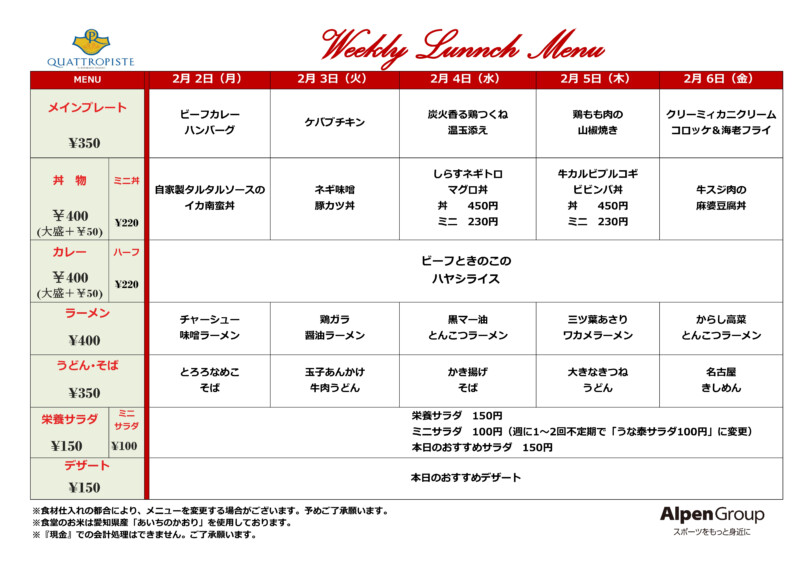 今週の食堂メニューです。