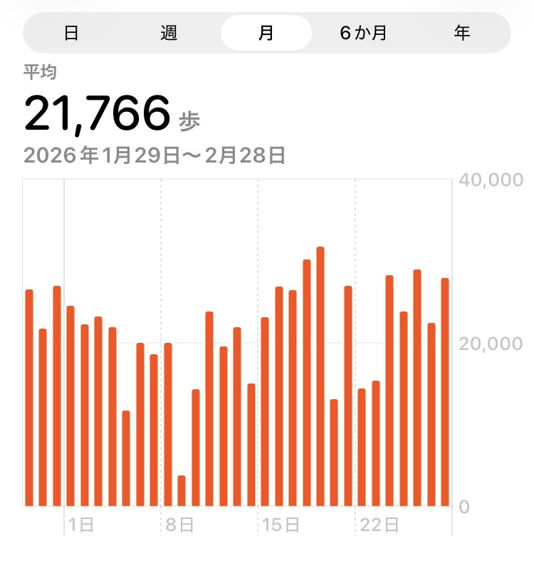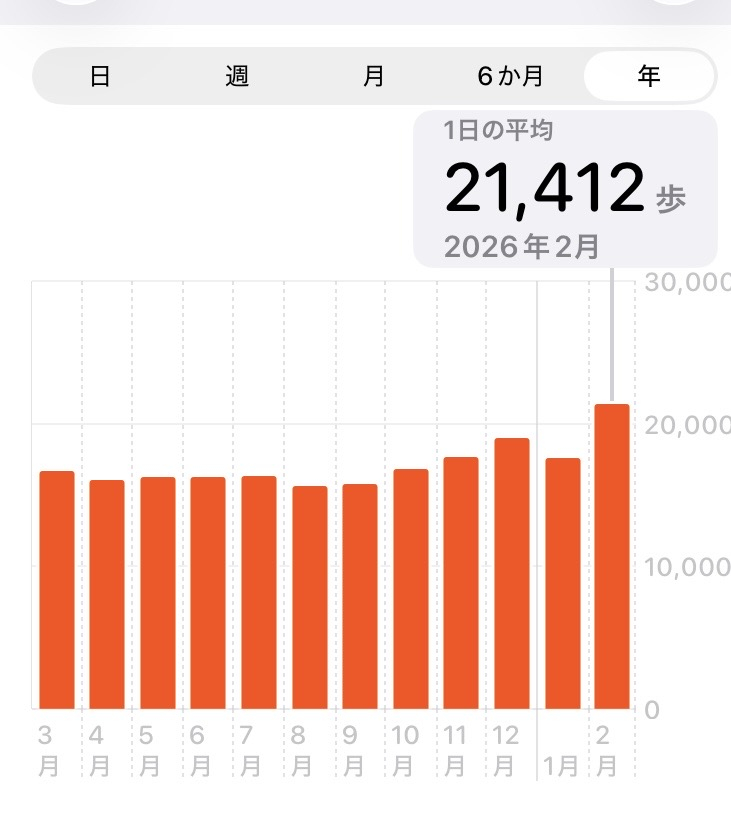 日記 いつもありがとうございます。 ウォーキングを楽しんで 2月の歩行距離は 初めて2万歩を超えました。 特に最終週は3万歩近い日が多かったです。 1万歩以下の日が1日しかありません。 体重は 1kg減りました(^^♪ 一覧を見る