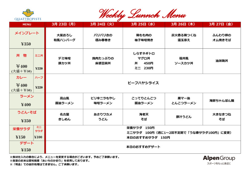 今週の食堂メニューです。