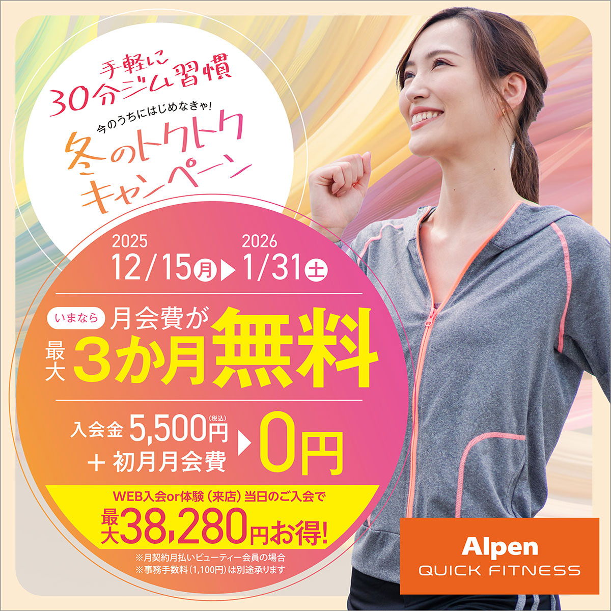アルペンクイックフィットネスでは、冬のトクトク入会キャンペーンを開催中!