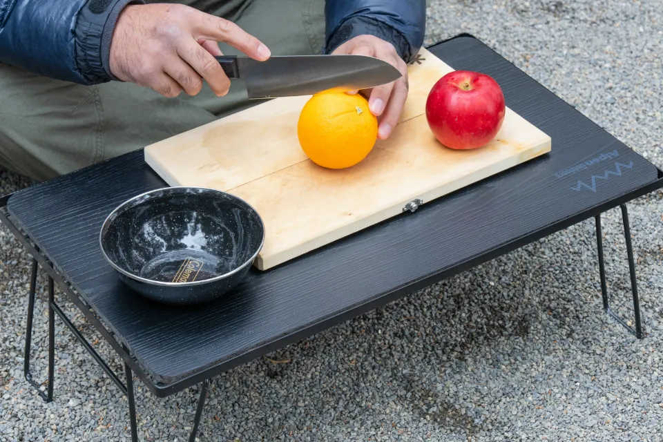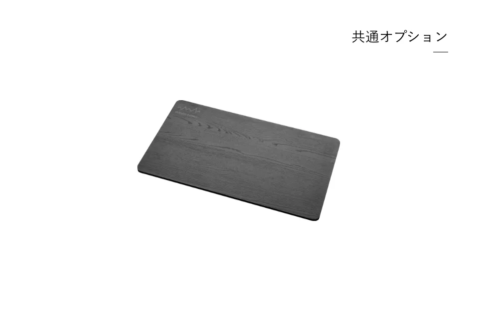 購入する標準のアルミ天板から好きな箇所にアクセントとして差し替えたり、天板全てを入れ替えてテーブルをウッド調にすることも可能。