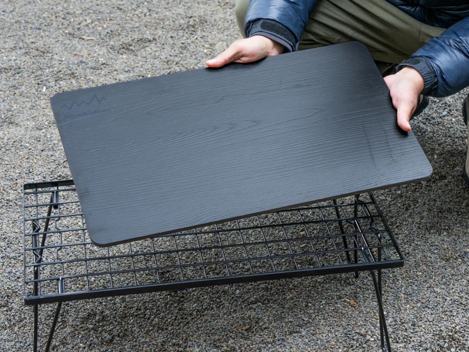 購入する設置場所を選ばないシングルバーナー用トレイはフレームにひっかけるだけの簡単設置。