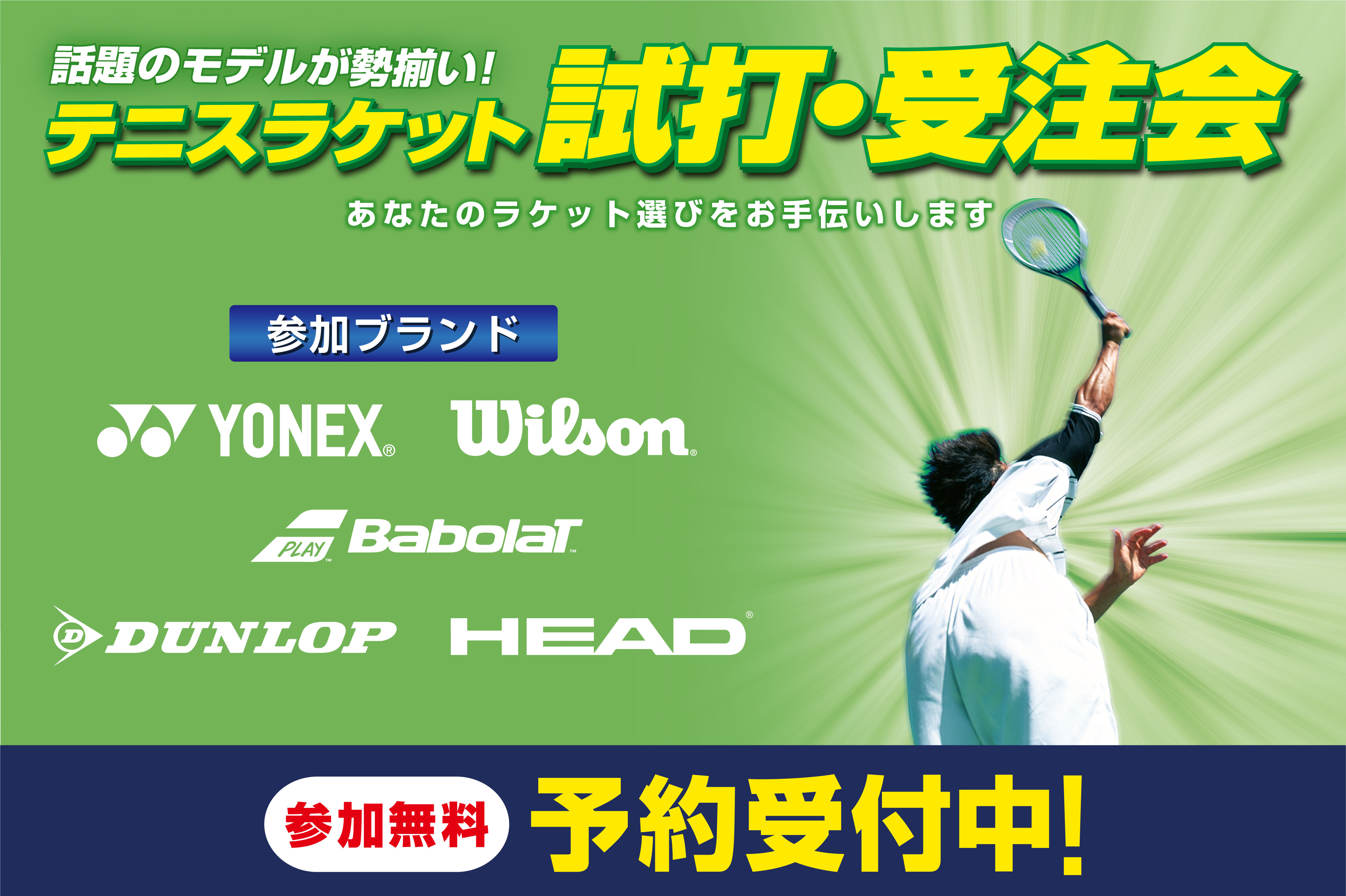 ※ラケット以外の、ストリング・ボール・シューズ・ウェア等の受注も会場にて承ります。