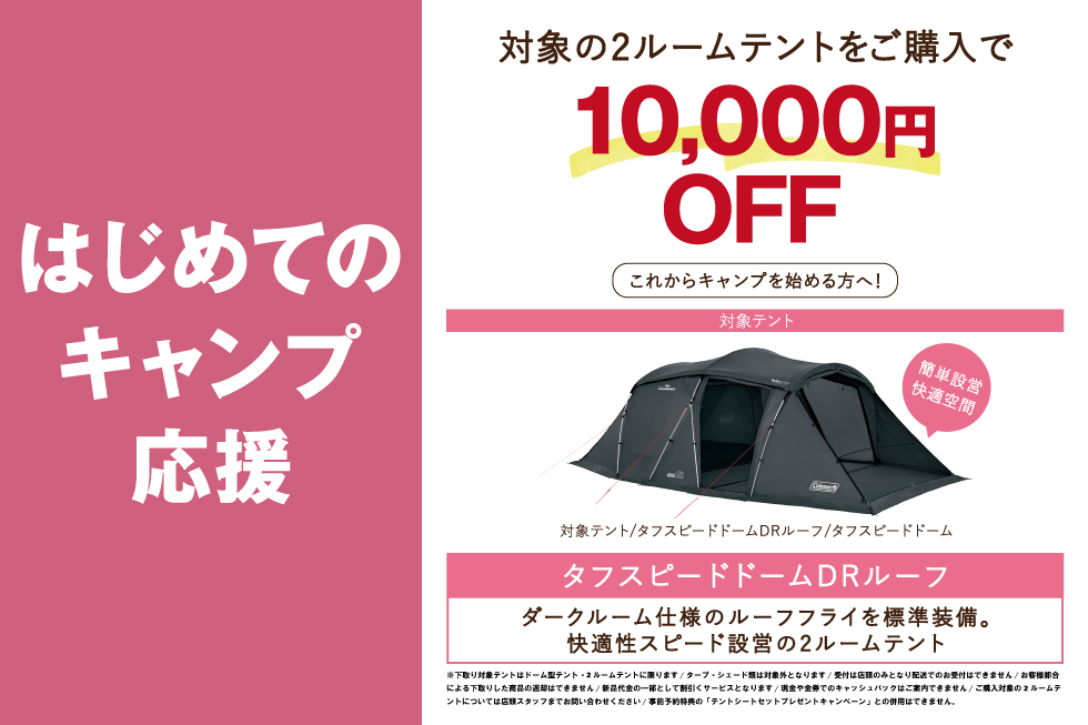対象のテントが1万円OFF!この機会にコールマンの人気テントをお得にゲットしよう!